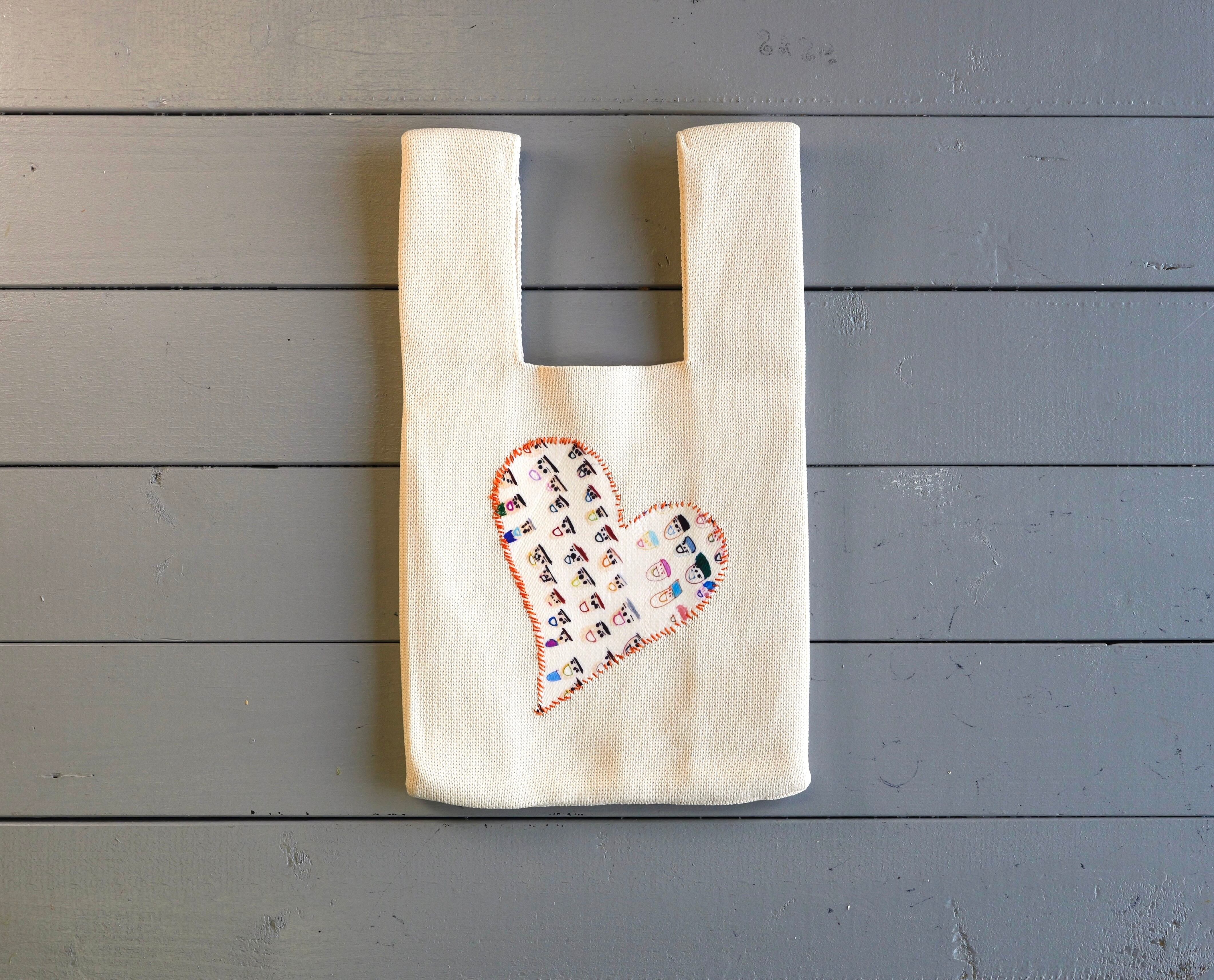 サイズ:袋部は縦22センチ、横20センチ。マチ付き。ハンドルは縦11センチ、横6センチ。