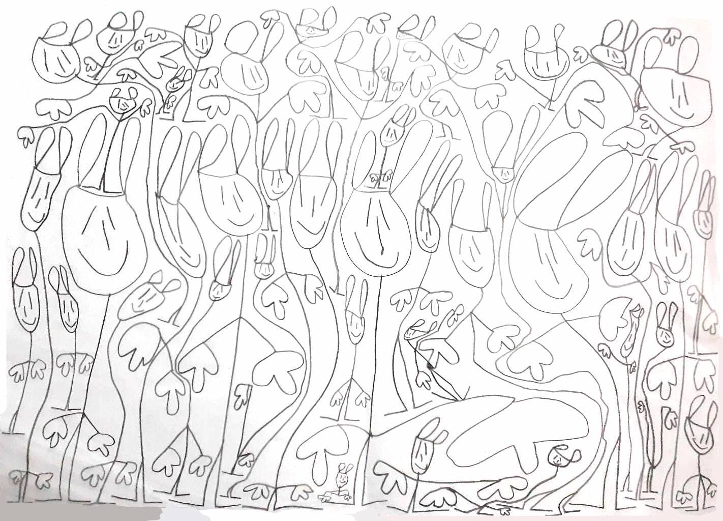 トートバッグ名:コンパクトトート 絵画作品名:うさぎかかし 作者:ヒロくん https://hananokoro.jp/memberfacility/133/ 内側にポケット付き 素材:綿100% サイズ(袋部):縦35センチ、横35センチ その他:高温アイロン不可