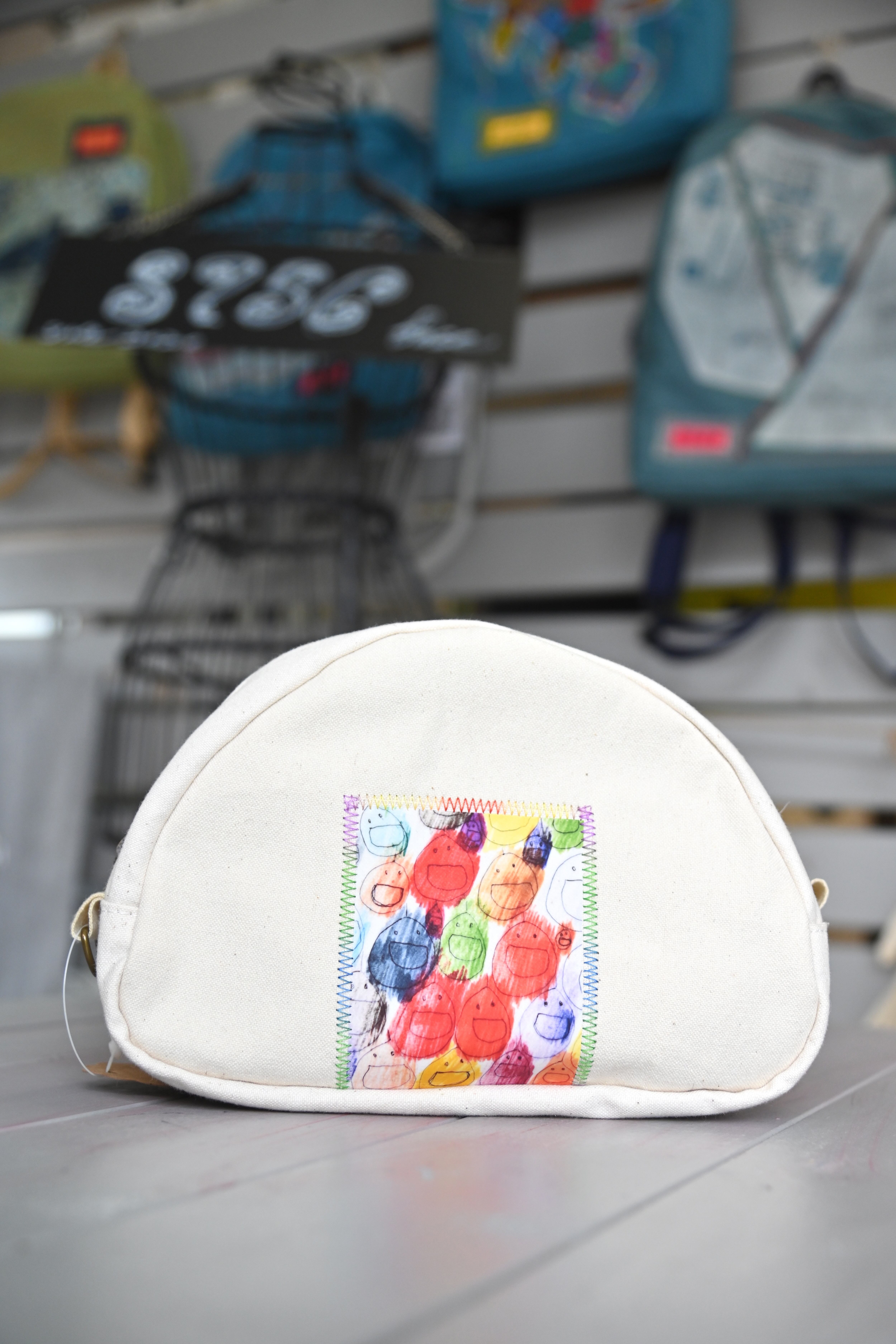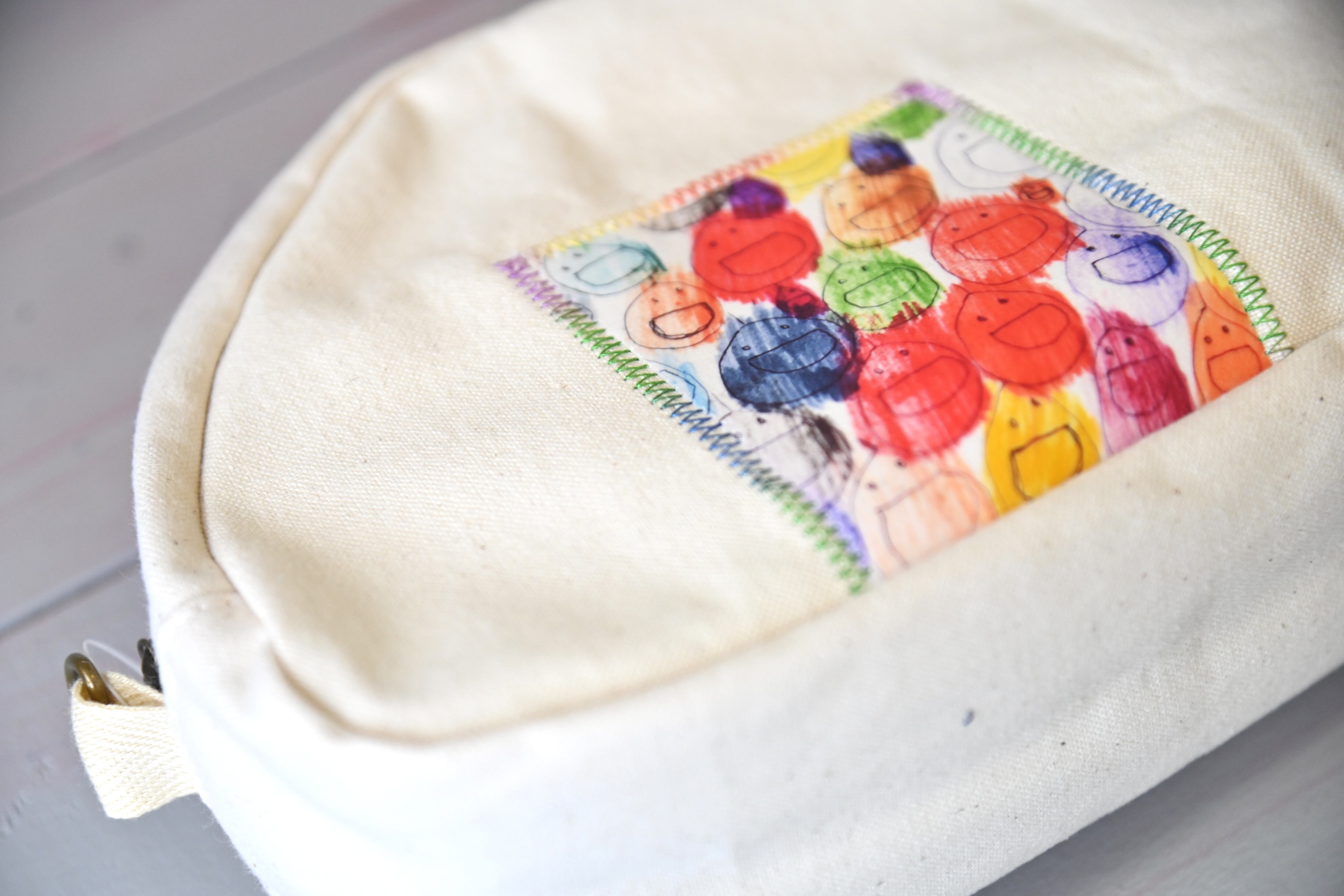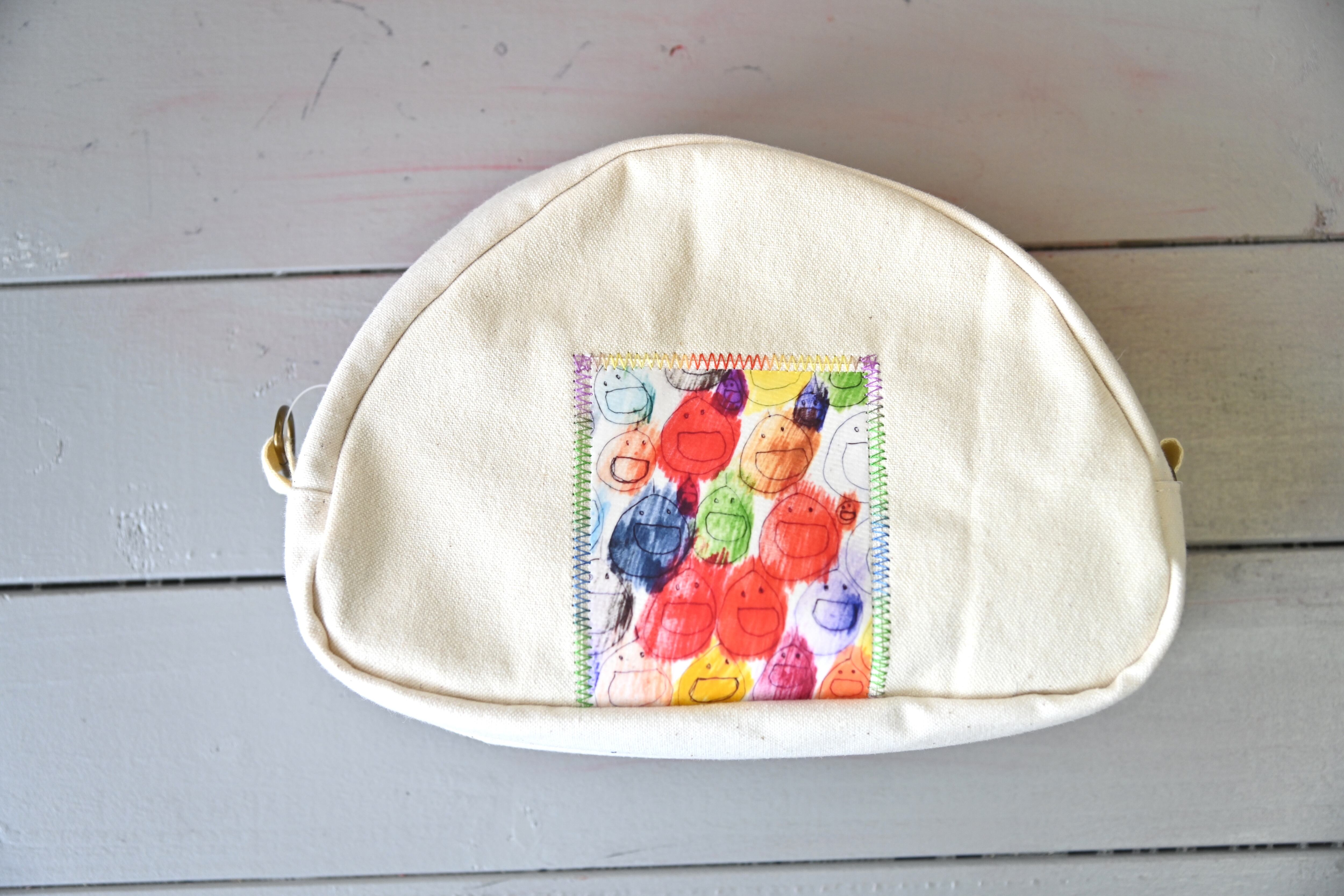 トートバッグ名:おにぎりポーチ 絵画作品名:ハロリン 作者:小野広美 https://hananokoro.jp/memberfacility/2873/ 素材:綿 サイズ(袋部):縦15センチ、横22センチ、マチ6cm その他:高温アイロン不可