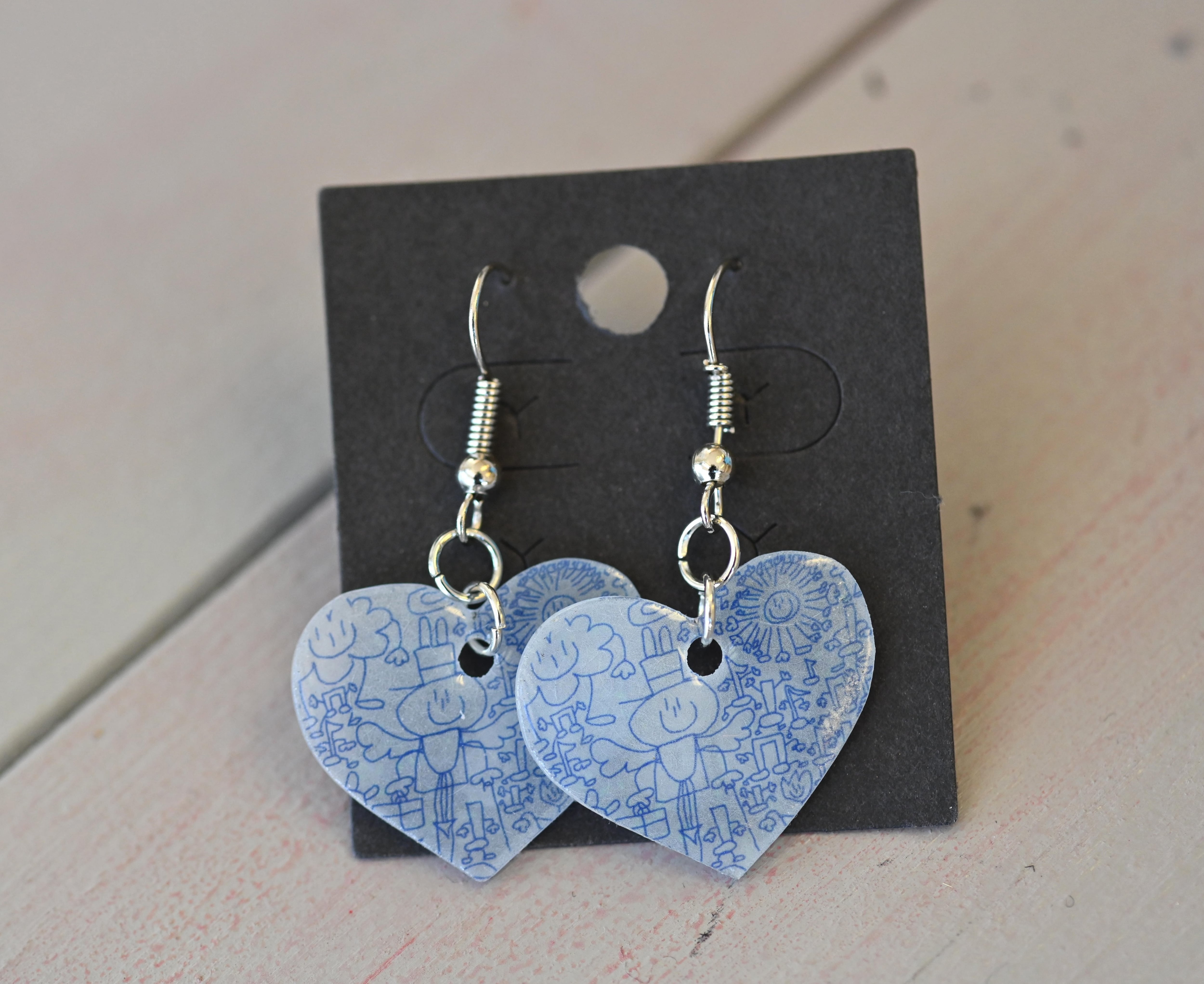 商品:ピアス 作者:ヒロくん https://hananokoro.jp/memberfacility/133/ 素材:プラ板 サイズ:縦2センチ、横2.5センチ。